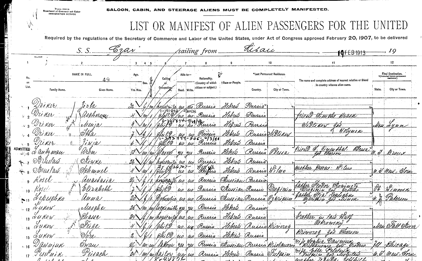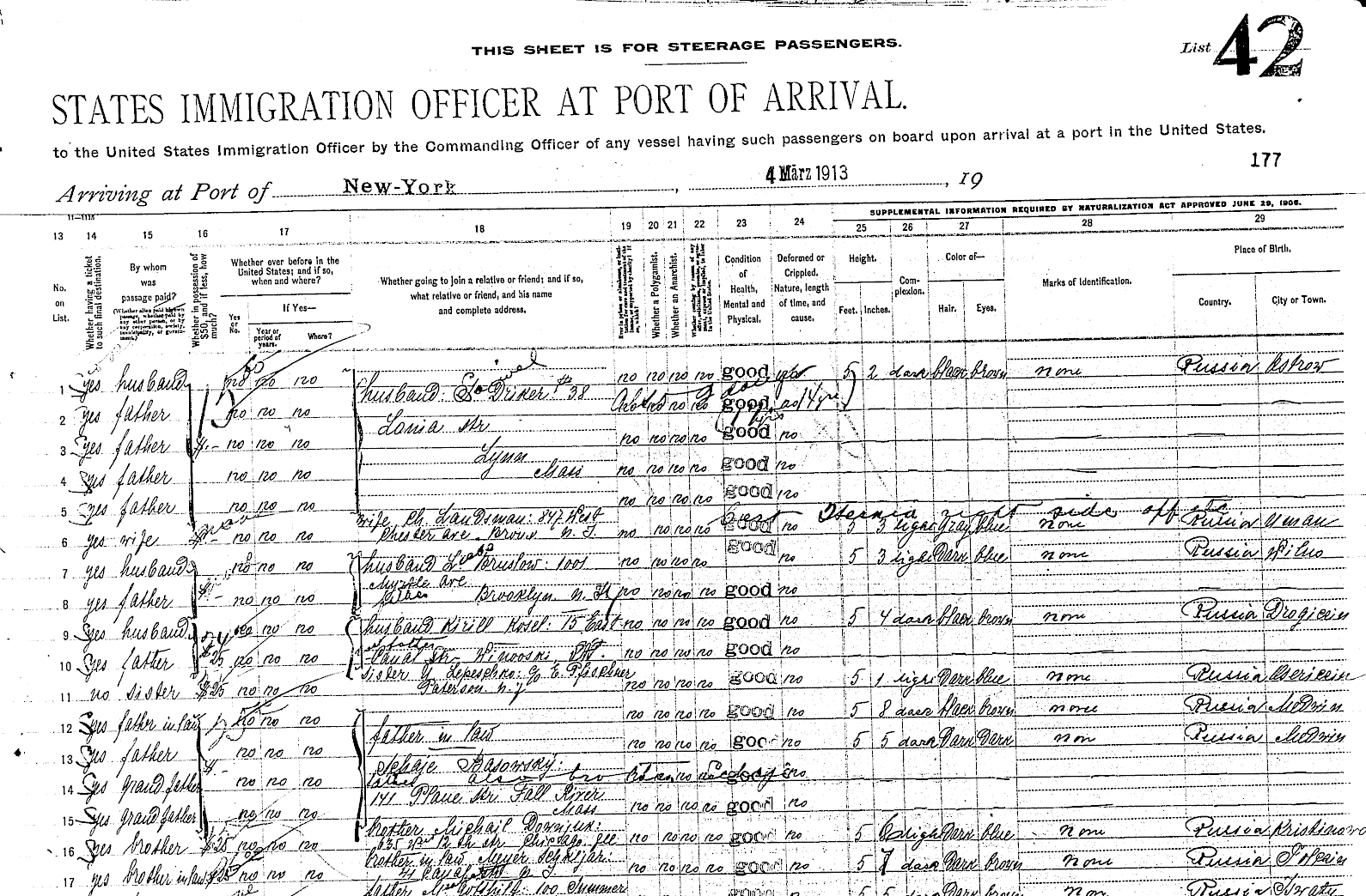 Etta PRUSEN was born on 1/15/1895 in Bobr, Belarus. She immigrated on the S.S. Polonia sailing from Libau arriving in New York City on 7/1/1923. 1930 Federal Census: